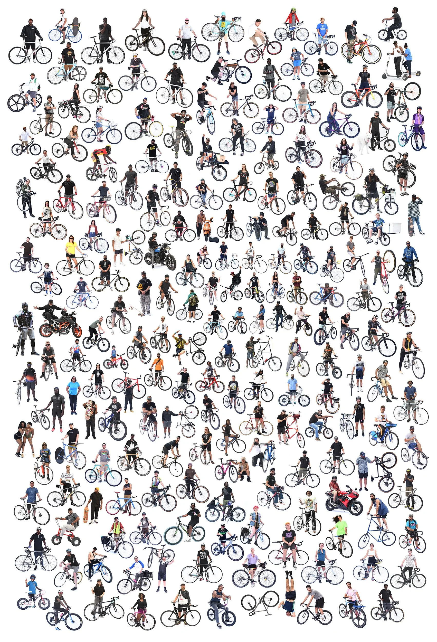 The first exhibition on Nov. 6, 2021 will feature all 200 individuals photographed in the streets of Manhattan, Raleigh & Atlanta. Photo Collection is a display of people from all walks of life that ride track bikes, tall bikes, road bikes, e-bikes, bmx, fixed gear, cargo bikes, skateboards, scooters & motorcycles.