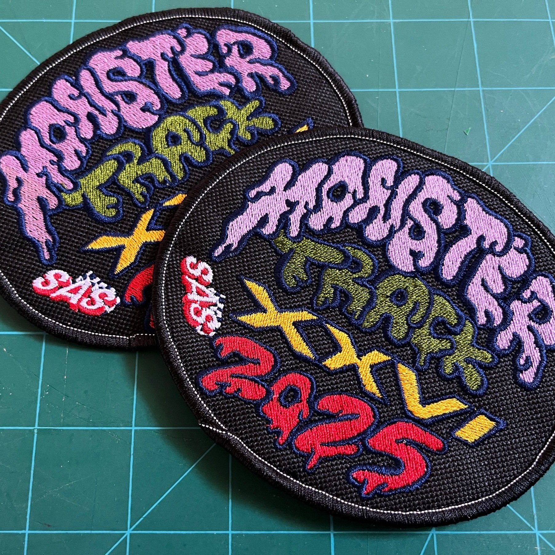 A couple leftover Monstertrack XXVI patches I designed as samples. I gave a bunch away during race week and these are the few leftovers.